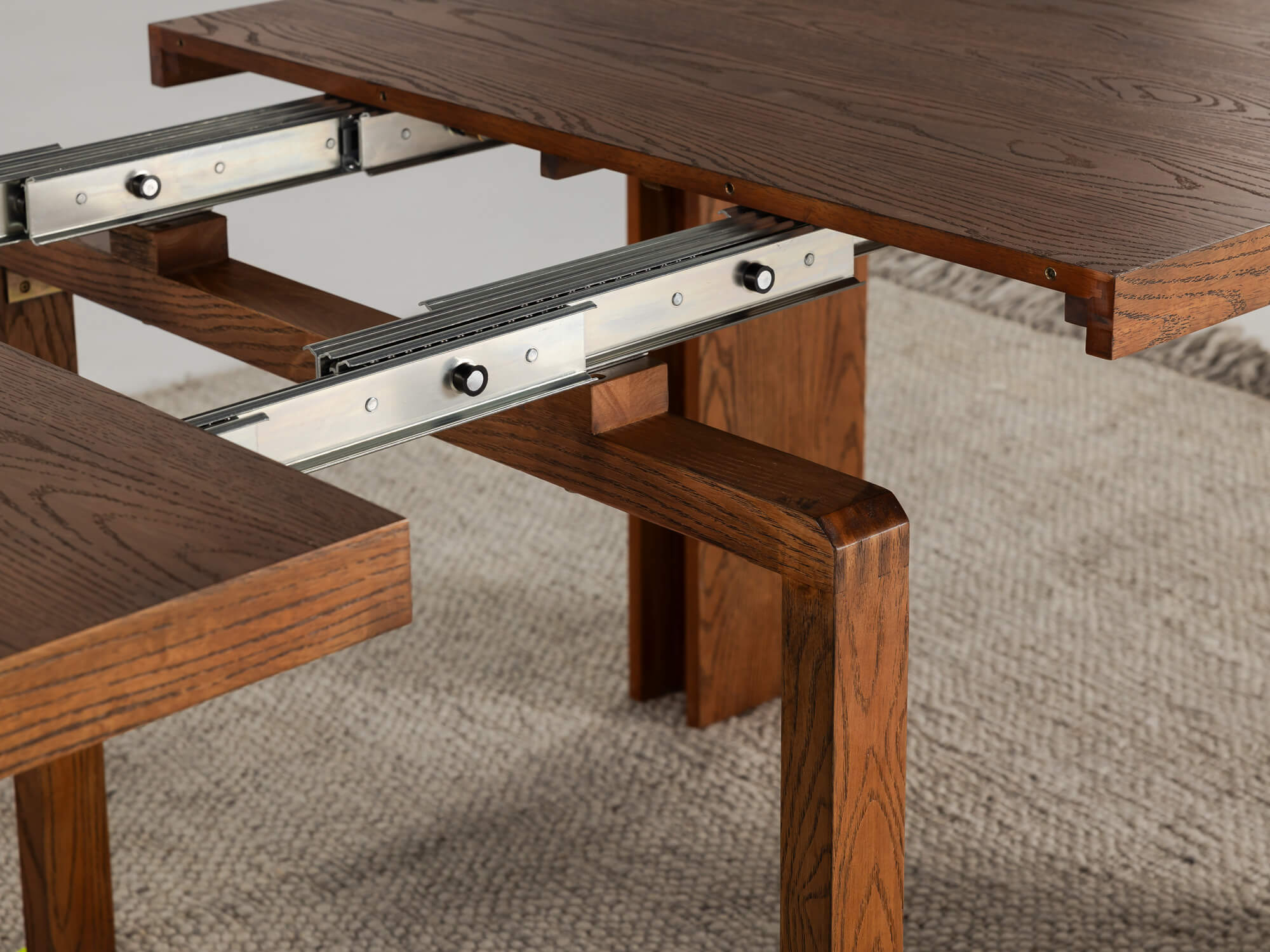 DIMENSIONS | The Rectangle ExtendableTransformer Table stands 76 cm high and 95 cm wide. It extends from a compact 46 cm to a maximum length of 300 cm using five 51 cm extension panels. This allows you to adjust the extendable dining table’s size according to your needs, from everyday meals to festive gatherings of up to 12 people. Perfect for homes that demand flexibility without compromising on design.