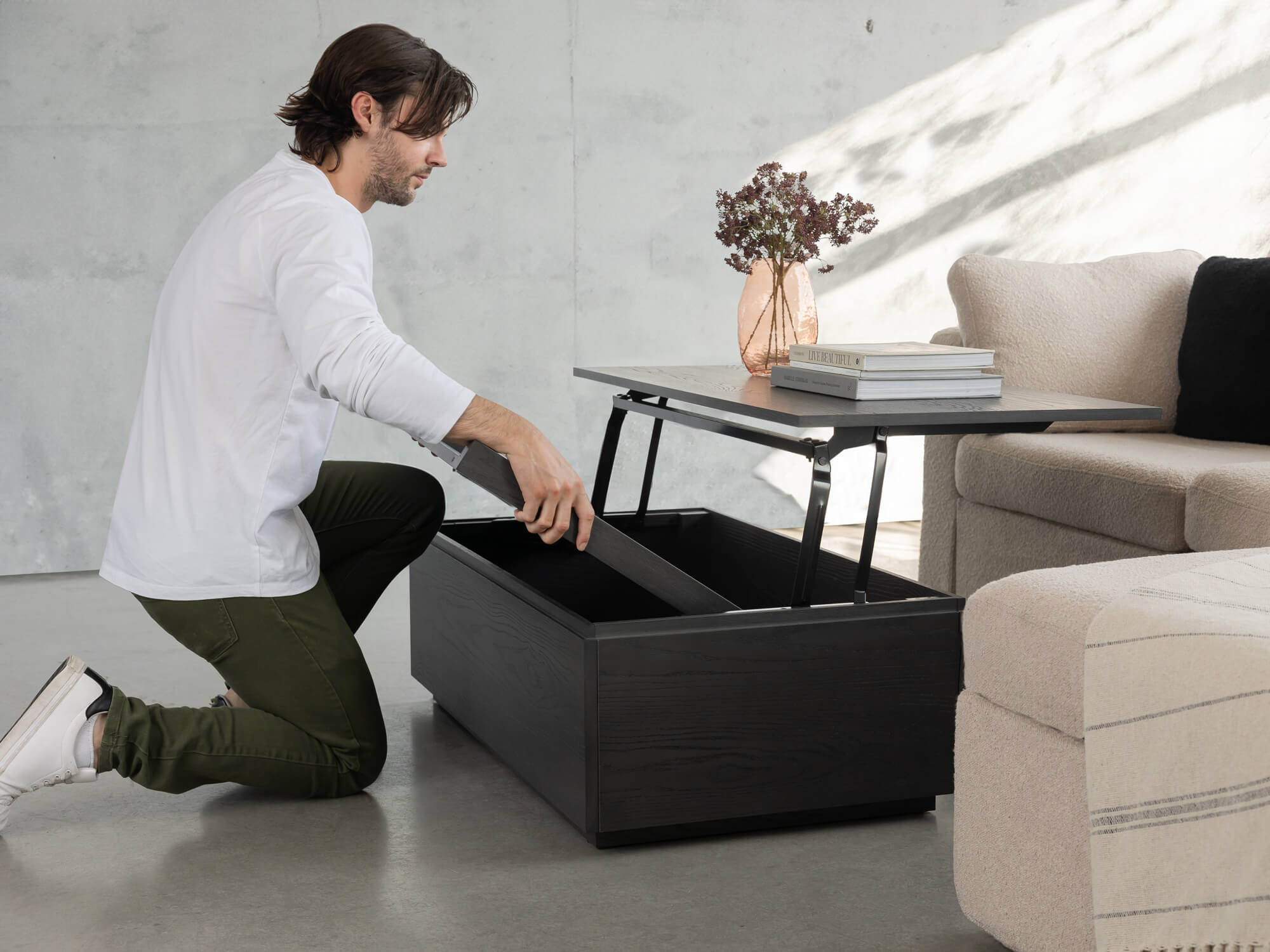 Available in three refined finishes, the Transformer Coffee Table brings natural warmth and timeless sophistication to any interior. Clean lines, robust materials, and exceptional functionality make it a smart, space-saving investment for modern living spaces.